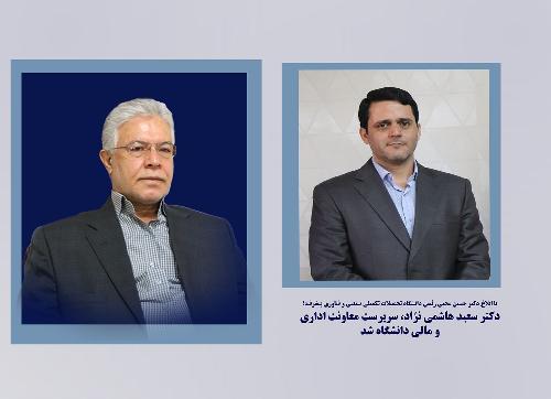 با ابلاغ دکتر حسین محبی رئیس دانشگاه تحصیلات تکمیلی صنعتی و فناوری پیشرفته؛ دکتر سعید هاشمی نژاد به عنوان سرپرست معاونت اداری، مالی دانشگاه تحصیلات تکمیلی صنعتی و فناوری پیشرفته منصوب شد